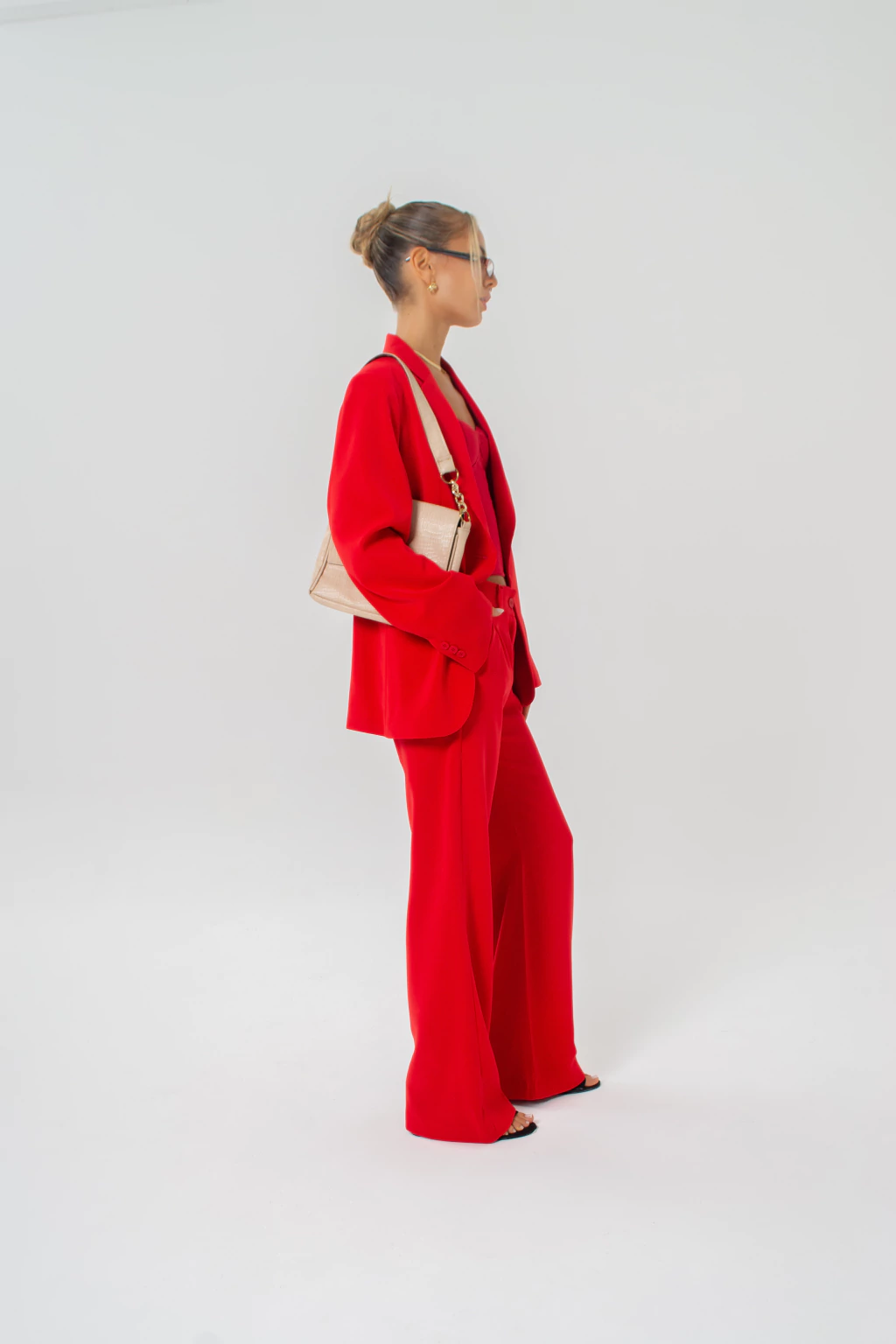 Blazer con forreria satinada, cuello con solapa, hombros marcados, bolsillos delanteros con solapa y cierre frontal con botón.